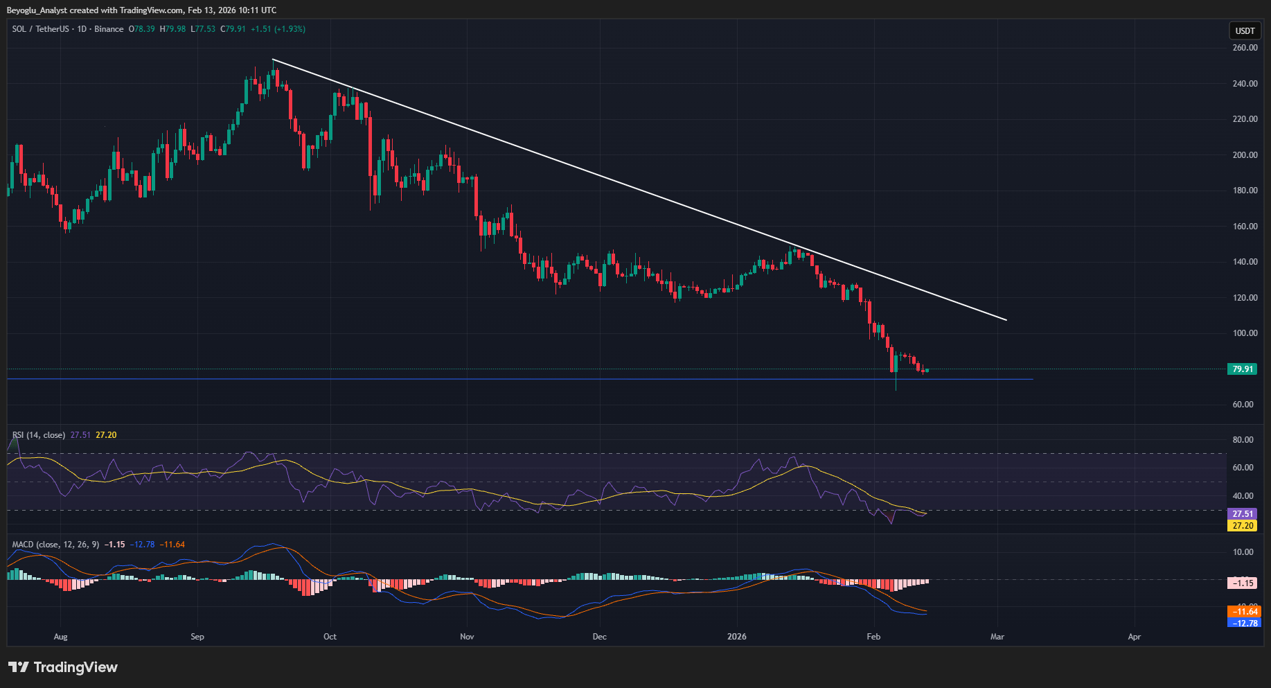Solana ($SOL ) đang đối mặt với sự giảm giá kể từ ngày 14 tháng 1 năm 2026 sau khi bị từ chối từ đường xu hướng giảm ở mức 140$. Bây giờ động lực trong SOL sắp thay đổi từ giảm giá sang tăng giá.