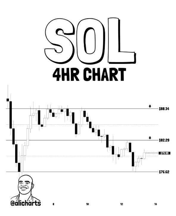 👉 Solana is showing fresh signs of life after finding solid footing around lower support on the 4-hour timeframe. The token has climbed back from the $76 zone and is now hovering near $80, testing overhead resistance with renewed buying interest. If this momentum holds, SOL could make a run at the $82 resistance level first, with $88 as the next major target on the radar.