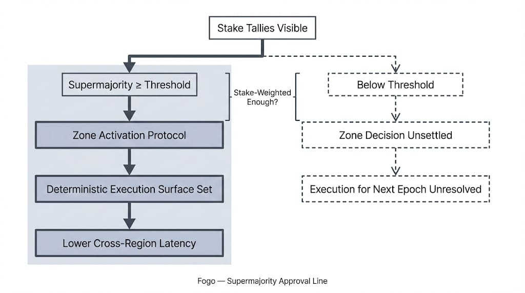 Bỏ phiếu theo khu vực có trọng số cổ phần không cảm thấy như quản lý trong khoảnh khắc. Nó cảm thấy như chờ đợi một con số ngừng lịch sự. Nếu đủ $FOGO ủng hộ một khu vực và dòng phê duyệt siêu đa số dọn dẹp, cấu trúc sẽ thắt chặt xung quanh địa lý đó. Nếu nó không dọn dẹp, không có gì di chuyển. Cùng các validator, cùng các giá đỡ, cùng độ trễ… và giờ tiếp theo vẫn chưa được giải quyết.