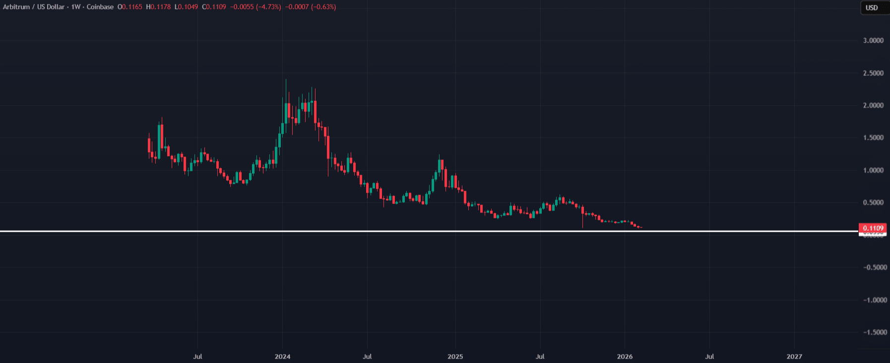 $ARB đang đối mặt với một thực tế tàn khốc. Giảm 40% trong năm 2026 và nối dài đà giảm 70% từ chu kỳ 2025, token vốn hóa trung bình này đã chính thức chìm vào vùng đáy thấp nhất mọi thời đại. Với 100% người nắm giữ đang thua lỗ, niềm tin chỉ còn treo lơ lửng trên sợi tóc. Tuy nhiên, một bước ngoặt chiến lược hướng tới Tài sản thế giới thực (RWA) có thể là chiếc phao cứu sinh cần thiết.