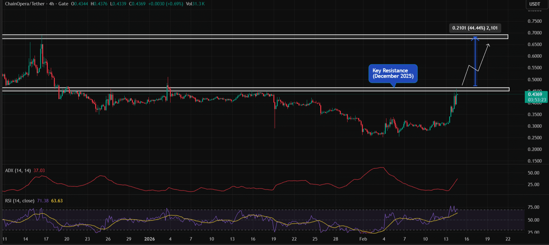 COAI tăng 39% với khối lượng khủng để kiểm tra mức kháng cự chưa từng bị phá vỡ kể từ tháng 12. Bạn đang cầm đèn chạy trước ô tô để đón đầu cú bứt phá lên $0.685, hay kiên nhẫn chờ nến ngày đóng cửa xác nhận trên mốc $0.45?