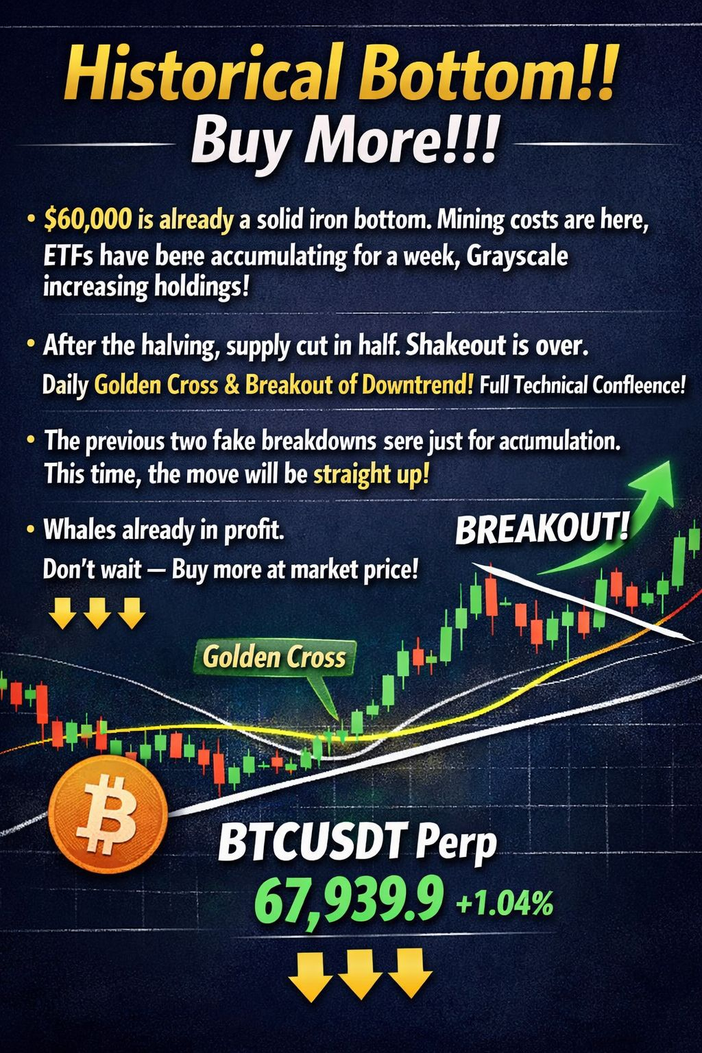 $60,000 is already a solid iron bottom. Mining costs are sitting around this level, ETFs have been accumulating for an entire week, and Grayscale continues to increase its holdings!