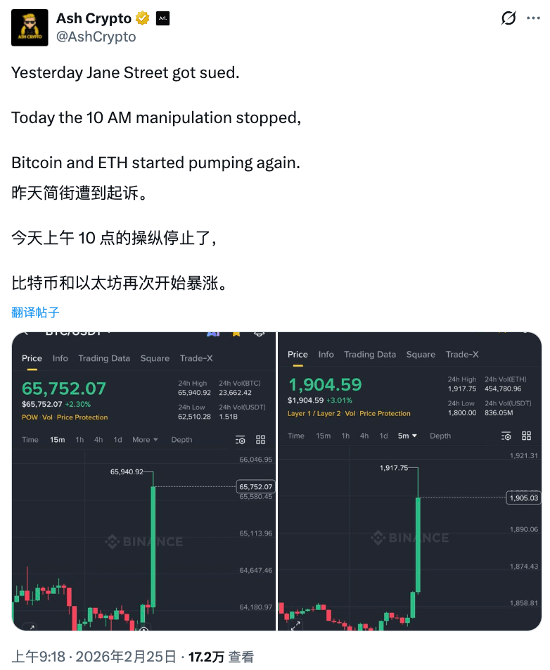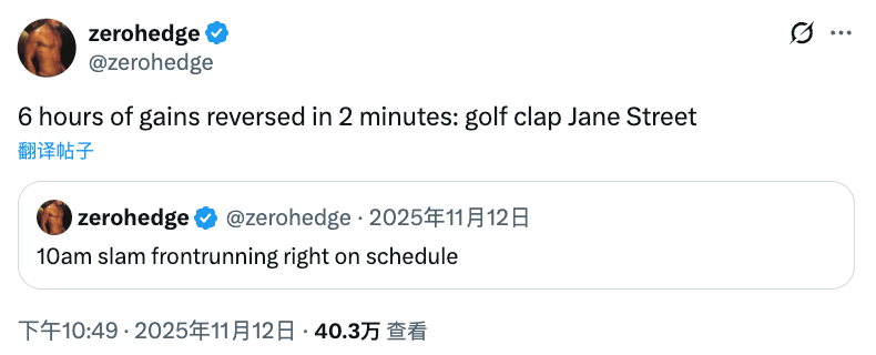 Và nhà báo tài chính ZeroHedge còn trực tiếp, từ tháng 7 năm ngoái, liên tục đăng tweet, chỉ đích danh người đứng sau là một trong những nhà tạo lập thị trường chính của ETF Bitcoin giao ngay: Jane Street. Sau cú đổ vỡ lúc 10 giờ, Jane Street âm thầm gom cổ phiếu, họ nắm giữ vị thế ETF Bitcoin IBIT của BlackRock vượt quá 2.5 tỷ đô la.