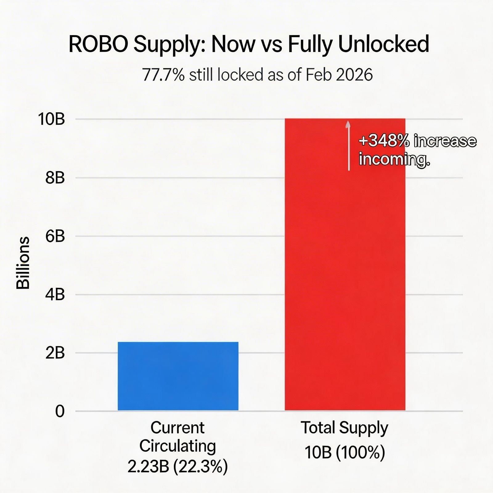 2.23B circulating (22.3%). 7.77B locked (77.7%). full unlock = 348% supply increase.