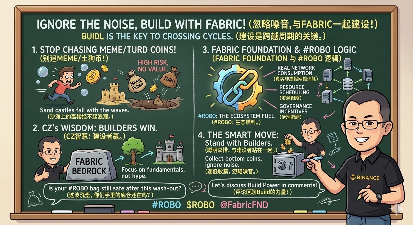 我过去一直跟大家强调一句话:Ignore the noise, keep building。你要学会忽略那些短期的市场噪音。如果你连一时的寂寞都熬不住,那在这个充满博弈的市场里,你注定拿不到大结果。真正能跨越周期的,永远是那些低头打地基的“修路人”。最近我们在深度梳理底层基建赛道时,@Fabric Foundation 这个团队的务实作风确实值得拿出来说一说。