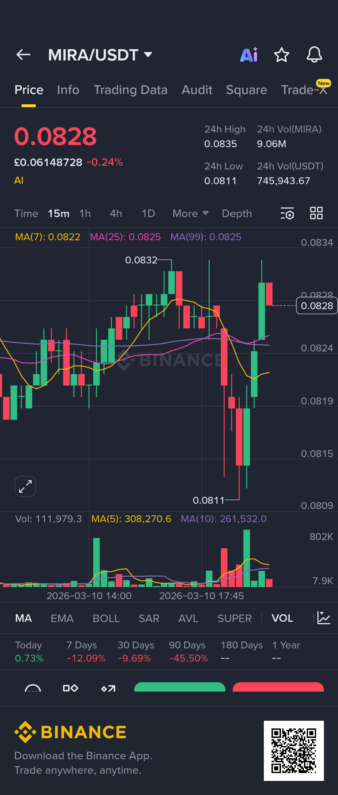 Giá Hiện Tại: MIRA hiện đang giao dịch khoảng $0.0825, giữ vững với mức tăng nhẹ 0.4% trong 24 giờ qua.