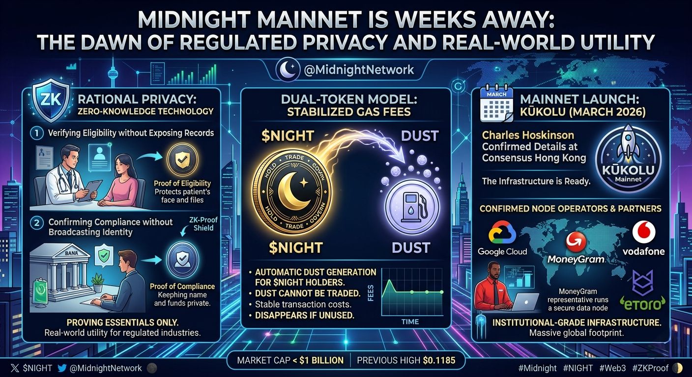 Everything centers on what they call "Rational Privacy." Instead of the binary choice between total transparency or total secrecy, Midnight uses zero-knowledge technology to prove only what is essential. Imagine a world where a clinic can confirm your eligibility for care without exposing your sensitive medical files, or a bank can verify your compliance without broadcasting your personal identity on a public chain. This is practical, real-world privacy designed for regulated industries, shifting the focus from "hiding data" to "protecting utility."