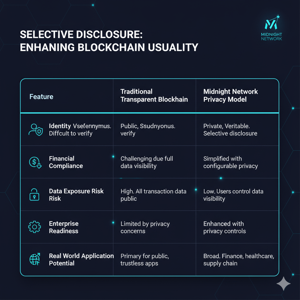 This is one reason projects like @MidnightNetwork are gaining attention. Instead of removing transparency, Midnight focuses on selective disclosure. Using zero knowledge technology, the network allows users to prove certain facts without revealing sensitive data.