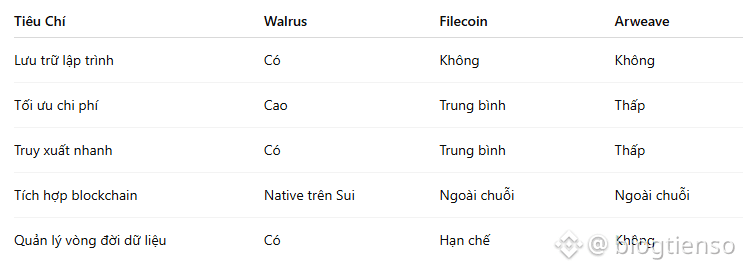 Điểm khác biệt lớn nhất của Walrus so với Filecoin hay Arweave chính là lưu trữ có thể lập trình.