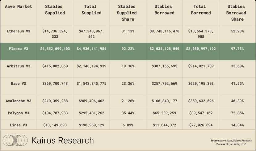 Trên Plasma V3, hơn 92% tài sản được cung cấp là stablecoins, và một con số ấn tượng hơn là 97.75% tài sản được vay là stablecoins. Đó không phải là một sự trùng hợp, và không phải là hành vi đầu cơ.